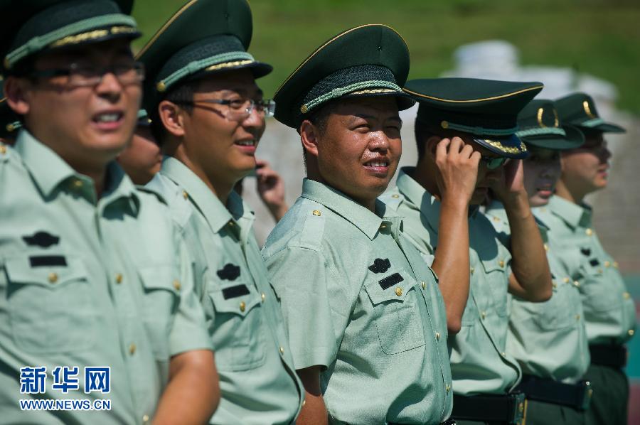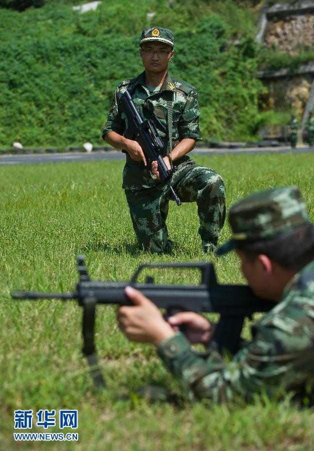 8月29日,博士學員們正在進行操槍訓練。從八月初開始,浙江省公安邊防部隊2012年新招收的110名高校應屆畢業生在浙江省邊防總隊教導大隊開始入警集訓。這些畢業生來自全國22個省市的62所高校,其中包括9名博士和10名碩士。集訓結束後,這批高學歷的警營新生力量將充實到浙江省公安邊防部隊的各個基層單位。新華社記者 徐昱 攝