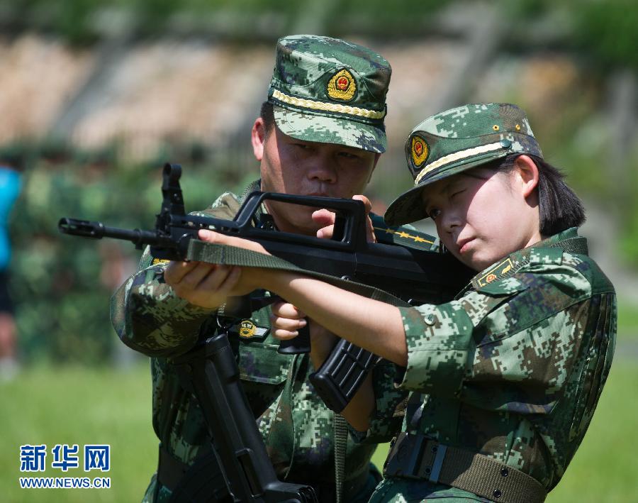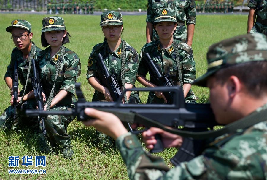 8月29日,女博士盛碧琦在進行操槍訓練。從八月初開始,浙江省公安邊防部隊2012年新招收的110名高校應屆畢業生在浙江省邊防總隊教導大隊開始入警集訓。這些畢業生來自全國22個省市的62所高校,其中包括9名博士和10名碩士。集訓結束後,這批高學歷的警營新生力量將充實到浙江省公安邊防部隊的各個基層單位。新華社記者 徐昱 攝