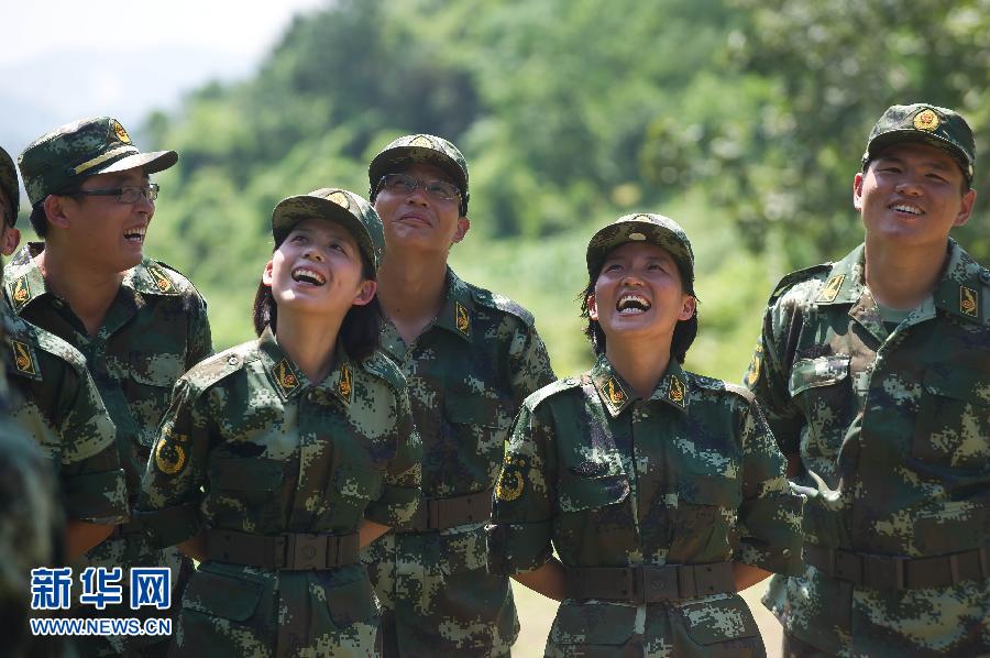 8月29日,女博士盛碧琦(左二)等正在觀看其他新學員進行拓展訓練。從八月初開始,浙江省公安邊防部隊2012年新招收的110名高校應屆畢業生在浙江省邊防總隊教導大隊開始入警集訓。這些畢業生來自全國22個省市的62所高校,其中包括9名博士和10名碩士。集訓結束後,這批高學歷的警營新生力量將充實到浙江省公安邊防部隊的各個基層單位。新華社記者 徐昱 攝
