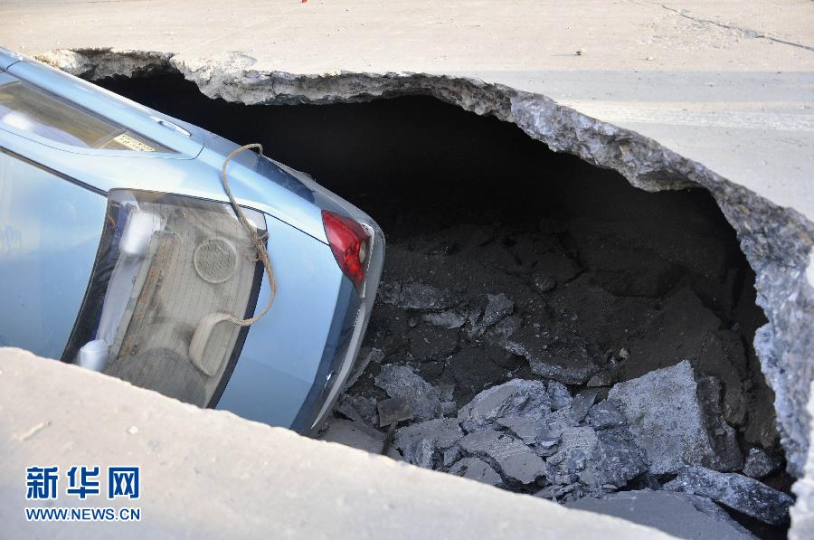 河北邯鄲發生路面塌陷 出租車墜入坑中