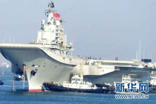 資料圖:在2011年8月10日,中國海軍第一艘航母平台實驗艦完成整修和改裝,首次進行試航。