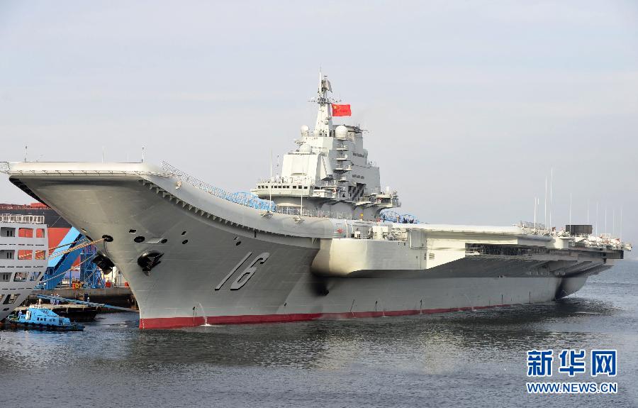 9月25日,我國第一艘航空母艦“遼寧艦”已按計劃完成建造和試驗試航工作。這是2012年5月,中國海軍航母平台正在進行試航。新華社發(李唐攝)