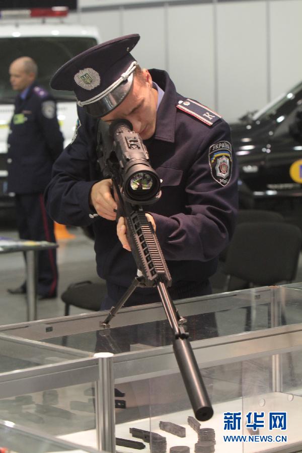 這是9月26日在烏克蘭首都基輔的2012年國際武器展覽會上拍攝的槍械。當日,位於基輔的烏克蘭國際展覽中心舉辦為期4天的國際武器展覽會。展品來自烏克蘭、俄羅斯、荷蘭、捷克和利比亞等國,包括作戰武器、狩獵用彈藥、軍事光學眼鏡及配件、軍事制服、反恐裝備和軍事通信裝備等。新華社發(斯塔羅斯堅科攝)