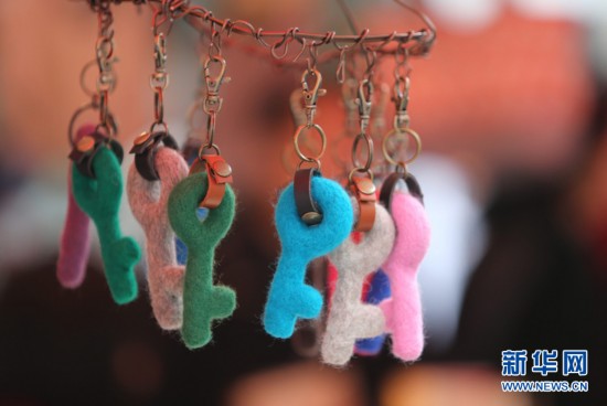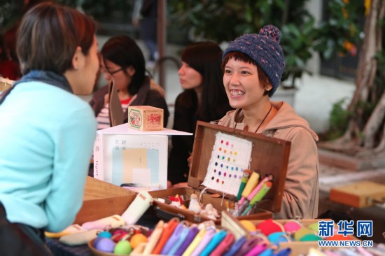 11月24日,市民在選購手工製品。當日,第12屆牯嶺街書香創意市集在台北牯嶺街舉辦,該活動每年舉辦一次,內容包括:城南人文懷舊主題展、舊書探索、手工製品展賣等,56個攤位展示了充滿書香與創意的台北風情。新華社記者 邢廣利攝