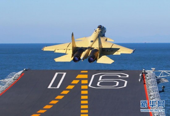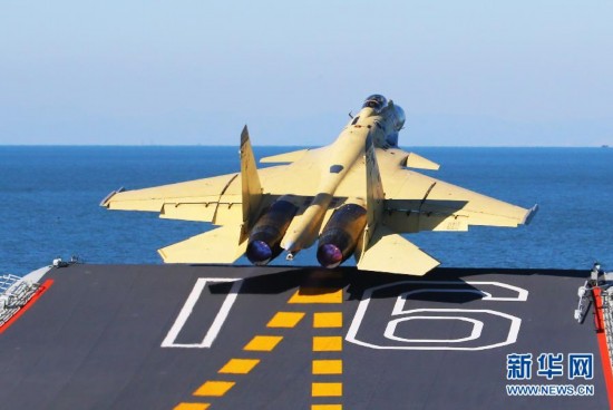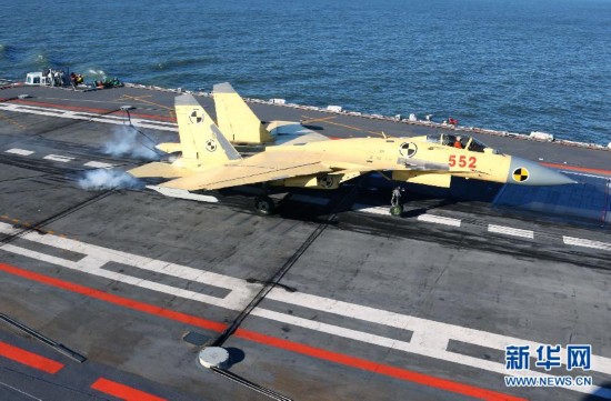 圖為殲—15艦載機在“遼寧艦”上順利着艦。 9月25日我國第一艘航空母艦“遼寧艦”交接入列後,海軍官兵以科學求實的態度和頑強拼搏的精神,按計劃迅速投入緊張的出海訓練和科研試驗任務中。期間,順利進行了殲—15飛機起降飛行訓練。航母平台和飛機的技術性能得到了充分驗證,艦機適配性能良好,達到了設計指標要求。殲—15飛機是我國自行設計研製的首型艦載多用途戰鬥機,具有完全的自主知識產權,可遂行制空、制海等作戰任務,飛行性能良好,配掛多型精確制導武器,具備遠程打擊和晝夜間作戰能力。新華社記者 查春明 攝