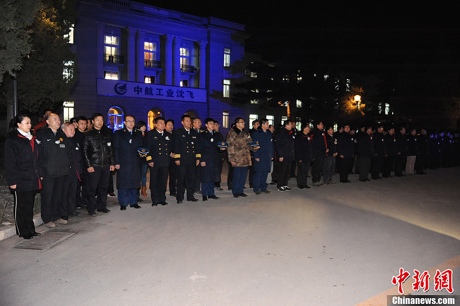 中航航空裝備有限責任公司特級專務、副總經理,中航工業瀋陽飛機工業(集團)有限公司董事長、總經理羅陽在成功歸來的中國航母“遼寧艦”上突發急性心肌梗死、心源性猝死,經搶救無效,於11月25日12時48分去世,享年51歲。圖為11月26日凌晨,沈飛公司員工聚集在羅陽曾經工作的辦公樓前,泣不成聲。中新社發 沈飛公司 供圖