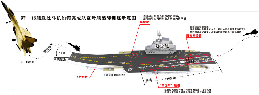 圖表:殲—15艦載戰鬥機如何完成航空母艦起降訓練示意圖 新華社記者 崔瑩 王永卓 編制