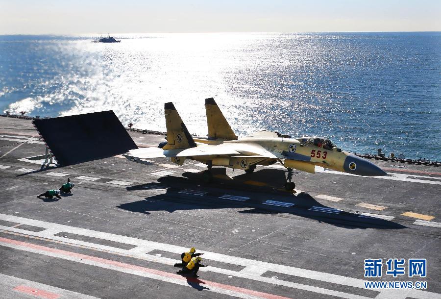 圖為“遼寧艦”出海進行科研試驗和海上訓練。 9月25日我國第一艘航空母艦“遼寧艦”交接入列後,海軍官兵以科學求實的態度和頑強拼搏的精神,按計劃迅速投入緊張的出海訓練和科研試驗任務中。期間,順利進行了殲—15飛機起降飛行訓練。航母平台和飛機的技術性能得到了充分驗證,艦機適配性能良好,達到了設計指標要求。殲—15飛機是我國自行設計研製的首型艦載多用途戰鬥機,具有完全的自主知識產權,可遂行制空、制海等作戰任務,飛行性能良好,配掛多型精確制導武器,具備遠程打擊和晝夜間作戰能力。新華社記者 查春明 攝
