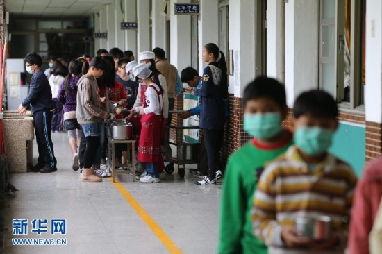 11月29日,台北大佳小學的學生在走廊上排隊領取午餐。學生“營養午餐”的問題近來備受人們關注。而推行“營養午餐”已有一段時間的台北市,在這方面有什麼成功經驗?11月29日,新華社駐台記者走進位於台北市基隆河畔的大佳小學,現場採訪、體驗這裏的“營養午餐”。新華社記者 邢廣利 攝