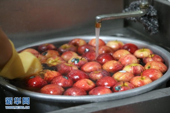 11月29日,工作人員在台北大佳小學的食堂裏準備午餐搭配的水果。學生“營養午餐”的問題近來備受人們關注。而推行“營養午餐”已有一段時間的台北市,在這方面有什麼成功經驗?11月29日,新華社駐台記者走進位於台北市基隆河畔的大佳小學,現場採訪、體驗這裏的“營養午餐”。新華社記者 邢廣利 攝