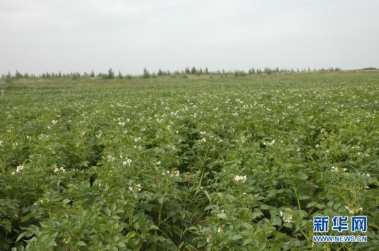 這是神華準能集團一處礦區排土場上種植的土豆(2012年8月16日攝)。今年秋天,神華集團準格爾能源有限責任公司(以下簡稱神華準能公司)排土場上試種的玉米、穀類、大豆等都獲得了豐收。現在公司正準備繼續擴大種植面積,力爭把採礦後形成的排土場改良成更肥沃、生產效率更高的土地,發展生態農業。排土場上草木茂密瓜果飄香,讓人很難看出這裏曾是荒坡禿頂的煤礦。神華準能公司地處內蒙古、山西、陝西交界處,年生產能力1500萬噸、排土排渣近億噸。公司所處的準格爾煤田是黃河中游最嚴重的水土流失地區之一,地表支離破碎,溝壑縱橫,氣候乾燥,植被稀疏,生態環境惡化,水土流失嚴重。為了有效治理採礦形成的廢土廢渣,神華準能公司進行了積極探索,利用排土場美化環境的成功做法正全面鋪開,煤礦在排土場上栽植了沙棘、沙柳等防風固沙的植物。新華社發