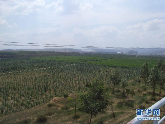 這是神華準能集團一處進行綠化建設的礦區(2009年8月18日攝)。今年秋天,神華集團準格爾能源有限責任公司(以下簡稱神華準能公司)排土場上試種的玉米、穀類、大豆等都獲得了豐收。現在公司正準備繼續擴大種植面積,力爭把採礦後形成的排土場改良成更肥沃、生產效率更高的土地,發展生態農業。排土場上草木茂密瓜果飄香,讓人很難看出這裏曾是荒坡禿頂的煤礦。神華準能公司地處內蒙古、山西、陝西交界處,年生產能力1500萬噸、排土排渣近億噸。公司所處的準格爾煤田是黃河中游最嚴重的水土流失地區之一,地表支離破碎,溝壑縱橫,氣候乾燥,植被稀疏,生態環境惡化,水土流失嚴重。為了有效治理採礦形成的廢土廢渣,神華準能公司進行了積極探索,利用排土場美化環境的成功做法正全面鋪開,煤礦在排土場上栽植了沙棘、沙柳等防風固沙的植物。新華社發