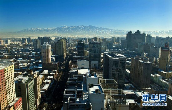 烏魯木齊城區陽光明媚,遠處的雪山清晰可見(12月10日攝)。進入冬季以來,烏魯木齊空氣質量優良天數超過2011年全年總數,創下17年來最好記錄。據新疆環保局提供的環境監測數據顯示,截至12月10日,烏魯木齊市空氣質量優良天數已達279個,比2011年全年的優良天數多3個。新華社記者 王菲 攝