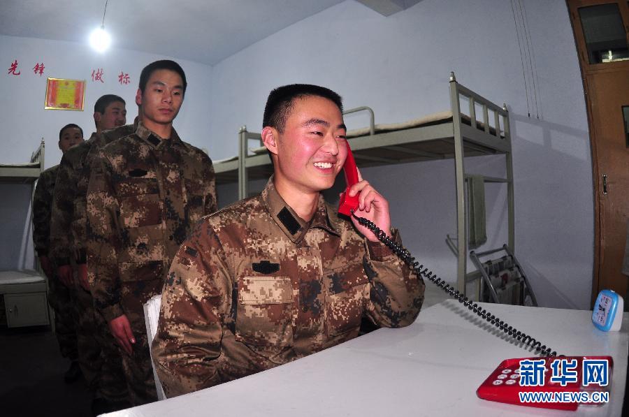 12月12日,剛剛報到的新兵排隊打電話,給親人報平安。當日,濟南軍區“鐵拳團”首批新兵步入軍營,度過軍旅生活的第一個夜晚。為了給新兵營造良好的生活、學習和訓練環境,該團針對今年招收的新兵籍貫、學歷等特點,早謀劃、早部署、早安排,各項保障工作已到位。新兵一入營,就感受到了家一般的温暖。新華社發(李鵬 攝)