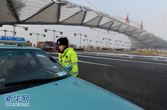 12月17日,常鴻玲在長春高速公路出口執勤。 “前方有霧,請開啓霧燈,速度慢點。”“哈爾濱方向下雪了,請您繞路走”……工作15年來,吉林高速公路交警常鴻玲日復一日地叮囑着來往司機。