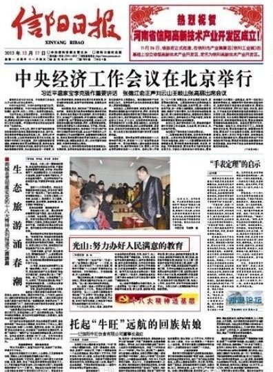 《信陽日報》於12月17日一版刊發了題為《光山:努力辦好人民滿意的教育》的報道(圖片來源:信陽日報電子版)