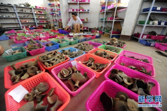 8月18日,一位文物工作者在修復南水北調中線庫區出土的文物。由於面積狹窄,文物庫房的地上和周圍的架子上都擺滿了等待修復的文物。由於南水北調工程,丹江口庫區搶救性發掘出土了數十萬件各類文物,其中不同時期的珍貴文物就有數萬件(套)。據專家介紹,完成全部的修復工作尚需10多年,南水北調中線庫區迫切需要一個文物存放和展示的平台,讓堆積如山的文物找到展現自己價值的“歸宿”。新華社記者郝同前攝