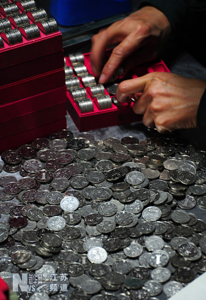 新華網江蘇頻道南京11月22日電 “睡覺睡到自然醒,數錢數到手抽筋”是很多人的“夢想”,但對於公交公司的職業點鈔員來説,這似乎並沒有那麼愜意。他們每天對着像小山一樣的錢幣,重複着一樣的動作,真的可以説是“數錢數到手抽筋”。江蘇省太倉市公交公司結算中心每天要清點整個公交公司52條營運線路、平均5萬多元的投幣箱營業款,其中硬幣近3萬元。