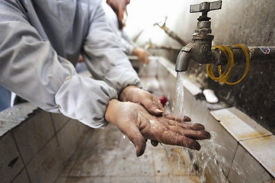 除了“唰唰”的數錢聲及硬幣被倒入計數機的金屬碰撞聲,點鈔車間裏十分安靜。數十名工作人員身穿白大褂,戴着白口罩,分坐成幾列安靜地埋頭數錢。