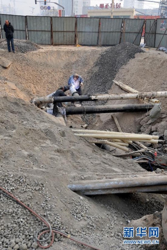 12月27日,在太原市幷州北路與幷州東街交叉口,搶險人員在加緊搶修。當日,太原市塌陷街道開始分層回填,地下的自來水、天然氣等管線已恢復正常運行。 12月26日16時左右,太原市幷州北路與幷州東街交叉口處發生道路塌陷。路面陷坑長約15米、寬約5米、深約3至4米,造成天然氣低壓管路斷裂、中壓管路破損,自來水管道斷裂,通信線路受損。經過搶險人員連夜作業,相繼修復了天然氣、自來水等受損管線,開始對塌陷區域進行分層回填。新華社記者 詹彥 攝