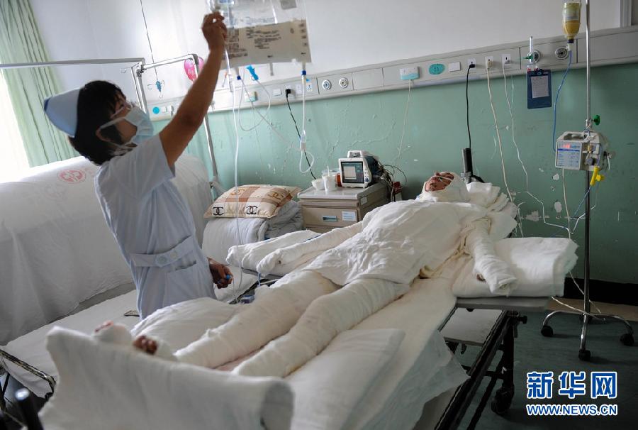 圖為9月11日,醫護人員在台州醫院燒傷科重症監護室照料羅傑。新華社記者 韓傳號攝