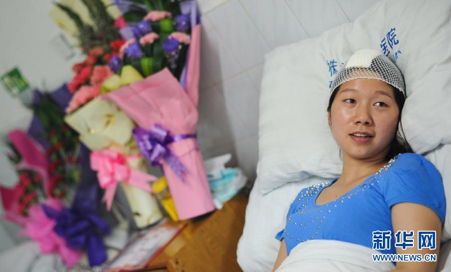 圖為5月7日,剛拆線的何遙躺在病房牀上休息。新華社發(白禹 攝)