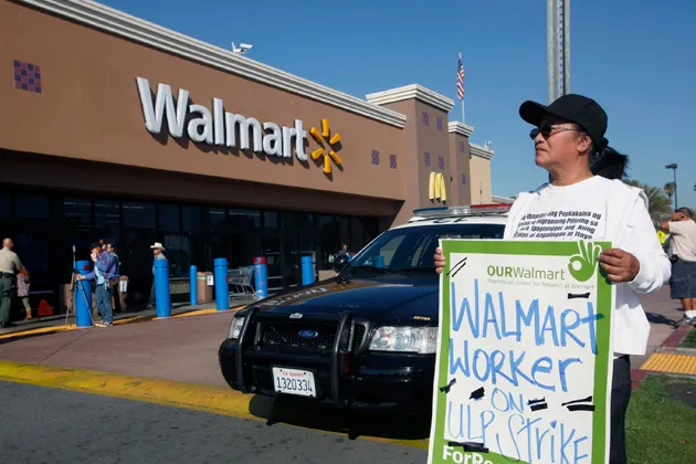 2012年11月23日,加利福尼亞州帕拉蒙特的沃爾瑪商店外發生抗議攝影:Nick Ut/AP Photo當不滿的 沃爾瑪 員工準備在2012年感恩節後的那個星期五 舉行抗議 時,全球最大的零售商在全國電視和其他地方威脅員工報復。這是非法的,根據 11月18日的聲明,由國家勞動關係委員會發布。該決定是在今年的黑色星期五前兩週做出的,屆時沃爾瑪員工計劃再次抗議。