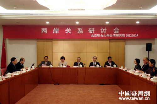 由北京聯合大學台灣研究院主辦的兩岸關係研討會19日在北京會議中心舉行。來自海峽兩岸的近30位專家學者參加研討會,就“兩岸政治對話問題”進行深入探討。(中國台灣網 張潔 攝)