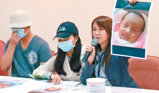 沈媽媽昨在北市議員簡余晏陪同下控訴,女兒緗緗今年八月出生後,因她母乳量不足,購買這款奶粉給女兒喝,一天約喝八次奶。但緗緗九月開始發燒,十月十五日發燒抽搐,送國泰醫院急救,雖一度退燒,但隔天凌晨再因呼吸急促病危,轉馬偕醫院急救。