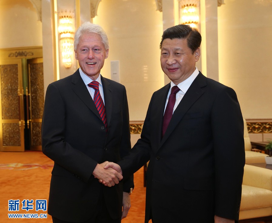 習近平指出,中美關係雖歷經風雨,但總體上朝着正確方向發展,取得了豐碩成果。在兩國曆屆領導人共同努力下,中美關係已經建設成為一座摩天大廈。我們雙方要繼續努力,為中美關係添磚加瓦。我同奧巴馬總統就共同建設中美新型大國關係達成重要共識。這是雙方着眼兩國和兩國人民根本利益作出的戰略決策。雙方正在加強政治、經貿、生態、人文等領域合作,還要共同應對氣候變化、能源安全等挑戰。只要雙方牢牢把握新型大國關係的大勢和原則,相互尊重,合作共贏,中美關係發展前景就會更加廣闊。中美關係發展需要兩國各界人士積極支持和參與。希望克林頓先生和克林頓基金會繼續作出貢獻,帶動更多人投身中美友好合作事業。
