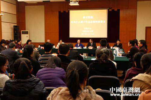 台盟中央、台盟北京市委11月18日在京舉行學習貫徹中共十八屆三中全會精神座談會。(中國台灣網 王怡然 攝)