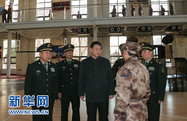 習近平指出,軍事訓練是提高實戰能力的重要途徑和抓手,要堅持仗怎麼打兵就怎麼練,打仗需要什麼就苦練什麼,部隊最缺什麼就專攻精練什麼,突出使命課題訓練,加大對抗性訓練力度,走開基地訓練的路子,在近似實戰的環境下摔打鍛鍊部隊。要強化信息主導、體系支撐、精兵作戰、聯合制勝的觀念,發展具有我軍特色的作戰理論和作戰思想。要深入學習貫徹黨的十八屆三中全會對國防和軍隊改革的戰略部署,充分認清深化國防和軍隊改革的重要性和緊迫性,準確把握改革的目標和任務,牢固樹立進取意識、機遇意識、責任意識,着力解決制約國防和軍隊建設發展的突出矛盾和問題,為實現強軍目標提供強大動力和體制機制保證。