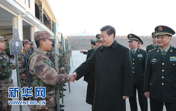 11月28日,中共中央總書記、國家主席、中央軍委主席習近平視察濟南軍區部隊。這是習近平觀看新戰士自動步槍精度實彈射擊後,表揚新戰士取得了好成績。新華社記者李剛攝