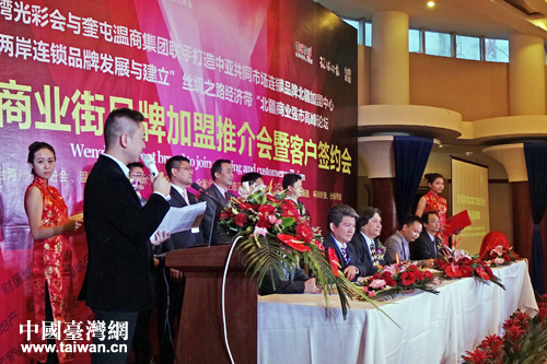 中國台灣網12月12日奎屯消息 12月9日,由台灣光彩促進會與新疆奎屯温商集團共同舉辦的兩岸連鎖品牌商業論壇在新疆奎屯市隆重舉行,這是兩岸服務貿易協議簽訂後,台灣連鎖品牌首次抱團進軍西北邊疆城市。
