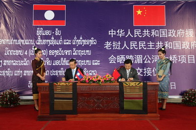 駐老撾大使關華兵出席援老會曬跨湄公河大橋項目移交儀式
