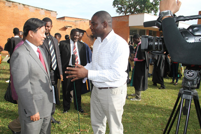典禮結束後,周大使就該培訓項目開展情況接受了贊國家廣播公司(ZNBC)記者採訪。