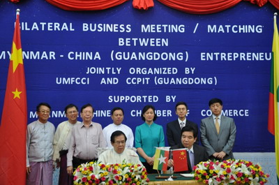 雙方在洽談會上簽署了廣東省貿促會與緬工商聯友好合作協議,雙方企業家還就深化投資合作交換意見。