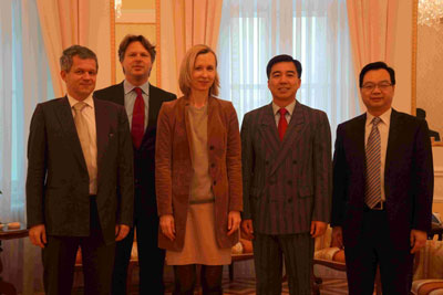 2013年12月16日、17日,駐奧地利大使趙彬邀請奧地利外交部亞澳司司長楚爾茨、禮賓司司長科恩保爾、亞澳司東亞處處長頓科等到官邸做客。