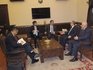 省長穆斯塔法首先對張總領事一行的到訪表示熱烈歡迎,強調克省在農業、畜牧業、礦業、食品加工業等領域資源豐富,市場廣闊,期待更多中國企業前來考察訪問、投資興業。張總領事表示,中土兩國人民友好關係源遠流長,2010年兩國戰略合作關係建立以來,政治互信不斷加強,經貿合作穩步增長,人文交流與民間往來顯著增加。近期,中國提出構建“絲綢之路經濟帶”,這將進一步拉緊同包括克省在內的土耳其各省之間交流與合作的紐帶,希望中土雙方共同努力,力爭在經貿等領域合作再上新台階。