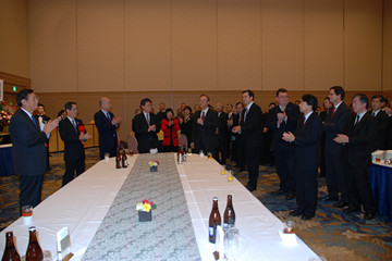 許總領事表示,感謝北海道華僑華人、留學生和中資企業任期內對我的理解和幫助,感謝總領館同事在過去的兩年多里對我工作的大力支持,感謝王子酒店多年來為總領館提供相關便利及今天招待會的周到安排。