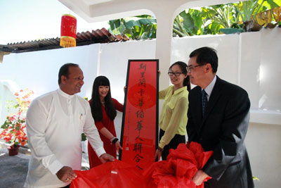 集會結束時,吳大使和佩雷拉副外長共同為斯里蘭卡華僑華人聯合會正式揭牌。