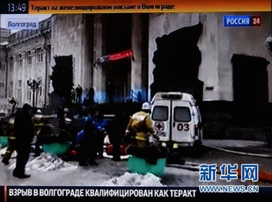 這是12月29日拍攝的俄羅斯南部城市伏爾加格勒一火車站爆炸現場的電視截圖。據俄塔社報道,俄南部城市伏爾加格勒火車站29日發生的爆炸已造成至少18人死亡、數十人受傷。 新華社發