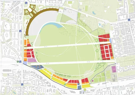 這座城市其實也不想失去它。他們的計劃是德國人所稱的 Randbebauung,或稱“環形建築”。這涉及在其邊緣周圍放置一圈公寓,以及商業空間和一個新的中央圖書館,留下大約66%的空間未被觸及。新的彎月形建築可能會縮短視野並給某些部分帶來陰影,但公園的中央草原將會存活。決定以周圍建築的兩倍高度進行建設,暗示了柏林規劃未來可能採取的方向。按照歐洲標準,這座城市一直以來都是相當高的,1970年代的公寓樓像海洋巨輪一樣夾在東柏林的 中央街道兩側。柏林牆倒塌後,柏林人開始向 布蘭登堡地區擴散,通常是搬到獨棟住宅。然而,現在高樓又回來了,城市正在計劃一座 弗蘭克·蓋裏設計的摩天大樓,這是迄今為止最高的建築,位於東柏林的中心。未來的柏林可能會被這樣的項目塑造成更高、更尖鋭的樣子,但至少它應該比蔓延的城市更為密集。