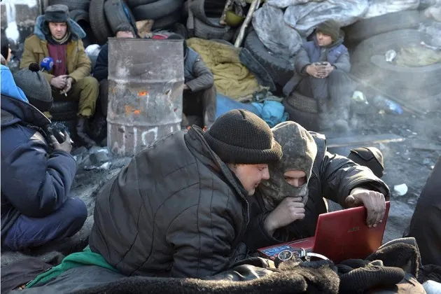 反政府抗議者在烏克蘭基輔的路障上在線,時間是2月5日攝影:謝爾蓋·蘇平斯基/法新社通過Getty Images俄羅斯對烏克蘭的干預去年超越了地理範圍,進入了社交網絡,當時莫斯科官員試圖收集加入社交媒體羣組的烏克蘭人的個人數據,這些羣組抗議該國親俄的前總統。