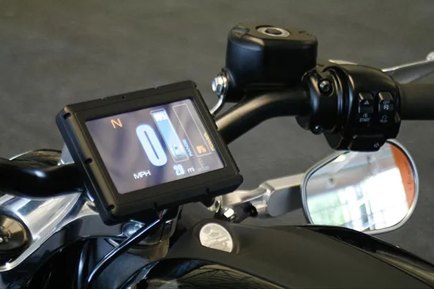 哈雷-戴維森新電動摩托車上的控制屏幕,位於公司在威斯康星州沃瓦託薩的研究設施。照片由M.L.約翰遜/AP照片提供