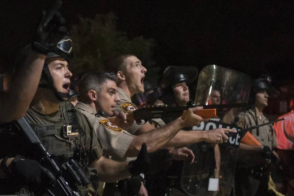 安全部隊在密蘇里州弗格森面對示威者,距無武裝黑人少年邁克爾·布朗被警察槍殺近兩週。路透社/阿德里斯·拉提夫18歲邁克爾·布朗在密蘇里州弗格森一名警察手中死亡,使與警察相關的殺戮重新成為全國重大辯論的話題。布朗只是 長長的 無武裝黑人年輕男性被執法人員殺害的最新一例。