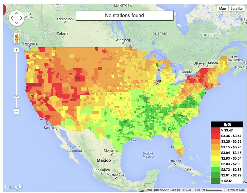 較低的油價開始在美國蔓延。Gasbuddy.com