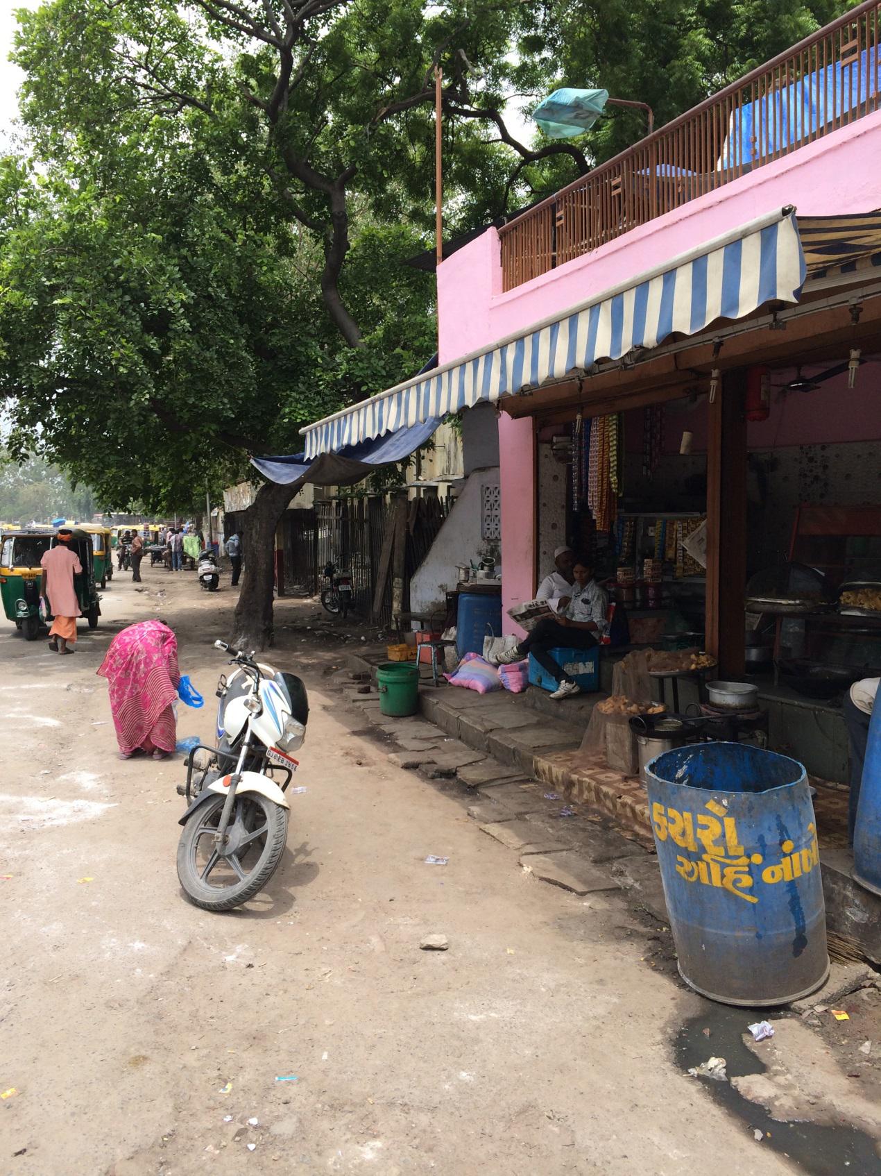 (2014.08.05下午)路過艾哈邁德巴德的某個小清真寺。這個小清真寺看起來簡直就是一個小型堡壘,上面裝有宣傳大喇叭,下面裝有鐵絲圍欄。從這個清真寺的設計就可以看出當年古吉拉特宗教騷亂有多麼慘烈。莫迪正是因為被指責處理不利而造成1000多穆斯林非正常死亡而被美國拒籤。