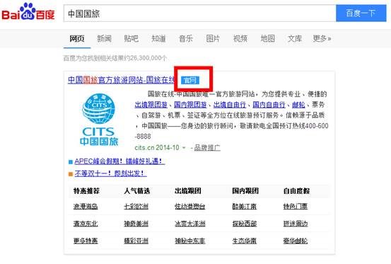 據瞭解,目前包括中青旅、中國國旅在內的各大主流旅行社以及攜程、藝龍等在線旅行網站均在百度進行搜索引擎營銷,為廣大網民旅遊出行提供便利。針對不斷曝光旅遊行業亂象,百度已建立一系列資質審核及監察措施。