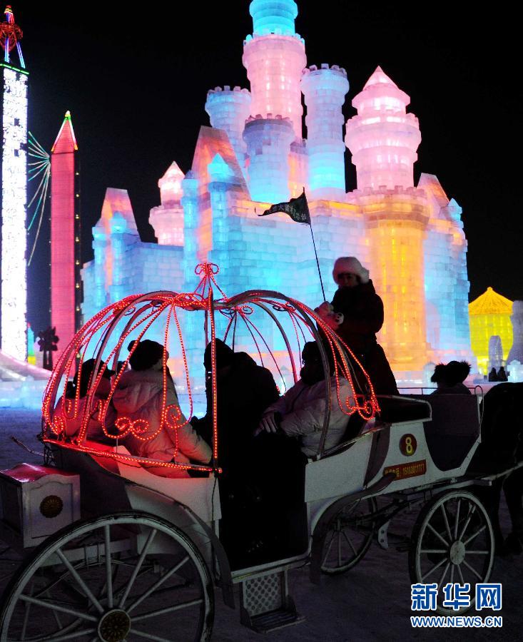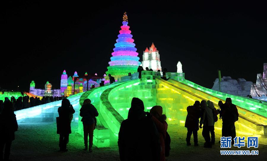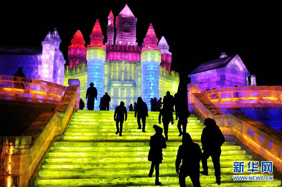 新華社照片,哈爾濱,2014年12月22日 哈爾濱:夢幻冰雪世界 這是12月22日拍攝的哈爾濱冰雪大世界園區內冰雪景觀。當日,以“雪國勝境、冰天大觀”為主題的第16屆哈爾濱冰雪大世界試開園。本屆冰雪大世界園區用冰量18萬立方米,用雪量15萬立方米,設置了冰雪景觀、娛樂設施、演藝活動、互動項目等內容,定於2015年1月5日正式開園。新華社記者 王松 攝